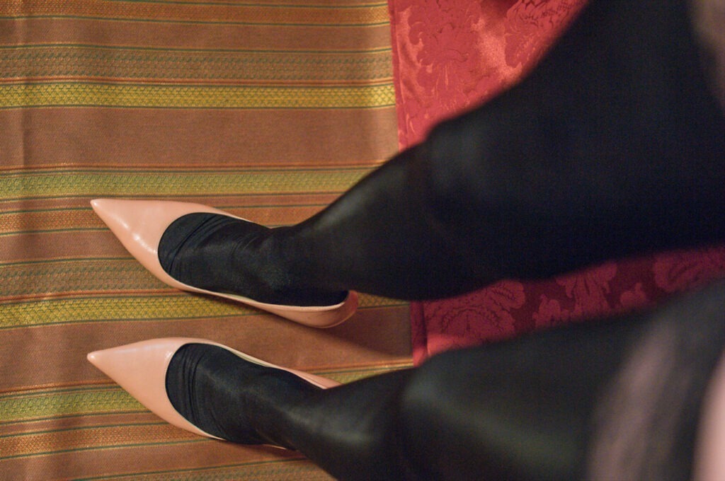 Eine kleine Vorschau auf den AG Nahtstrumpf Satin- Nahtstrumpf aus haltbarem Satin. Massgeschneidert und natürlich mit originaler Strumpfnaht, so wie sie richtige Nahtnylons schon immer hatten. Diese Naht wird mit einer originalen UNION-SPECIAL Strumpfnähmaschine aus den 50er Jahren genäht. Mit diesen Maschinen werden auch heute noch echte Nahtnylons genäht.