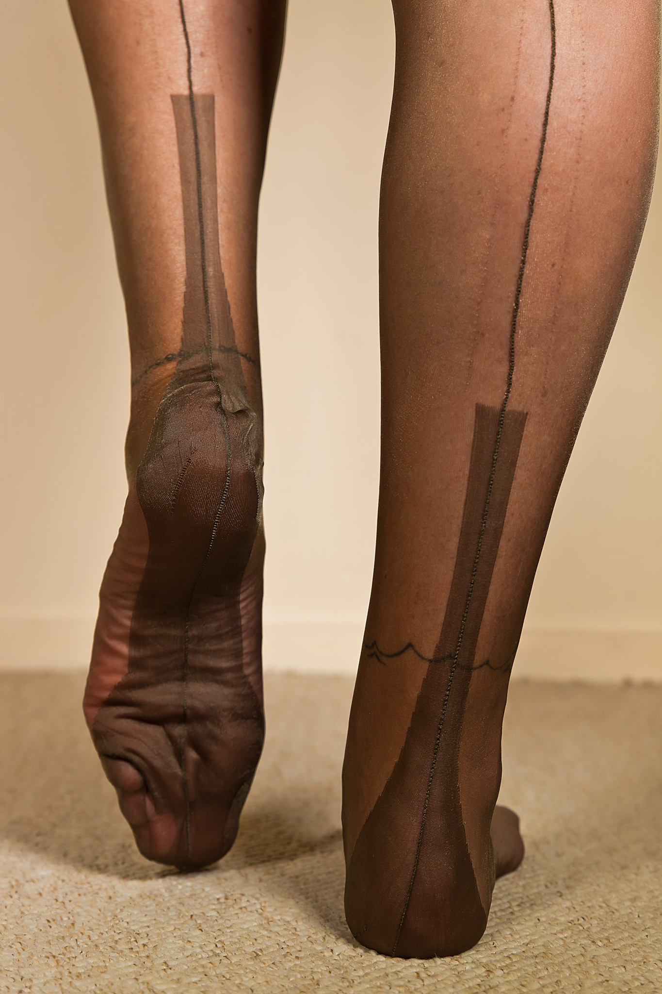 Besucherinnenfoto, Beine in Nahtstrümpfen